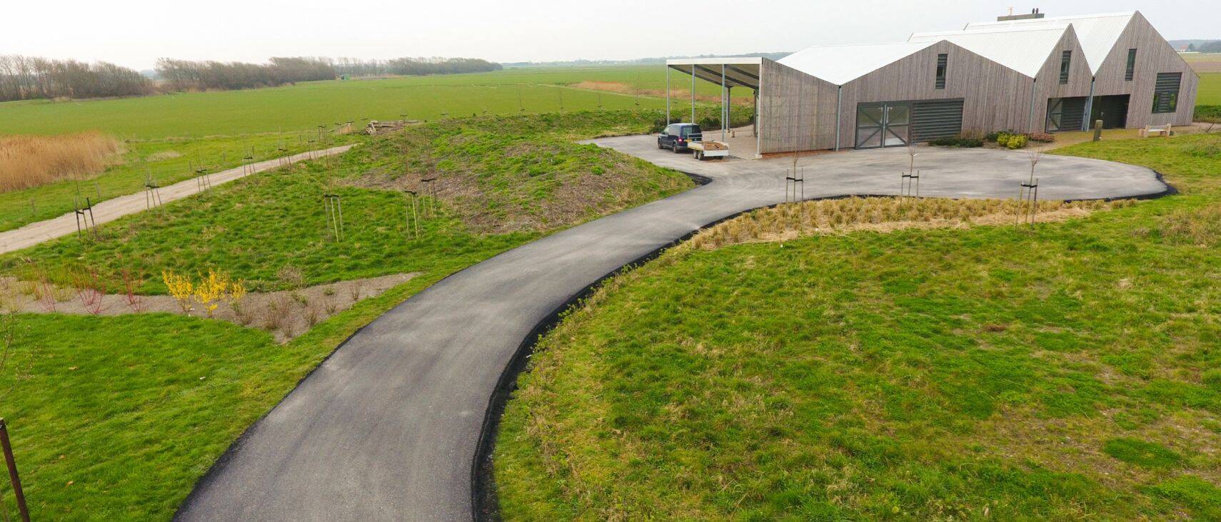 De opdrachten lopen enorm uiteen. Van kleine parkeerplaatsen tot terminals van 300.000 vierkante meter. Ook bijzondere plekken passeren de revue: een skeelerbaan die moet voldoen aan NOC*NSF-eisen, een landgoed met strenge esthetische eisen of een pad op een schapenboerderij. ‘Op die boerderij ontmoette ik een klant, die van zijn vrouw het pad naast de boerderij moest laten doen. Tijdens het gesprek kreeg ik geen klik met hem. Ik stelde voor om even een rondje te lopen over het terrein, even een andere omgeving wil nog wel eens helpen,’ herinnert Eric zich. ‘Bij de schuur aangekomen zag hij een schaap dat moest lammeren. Ik heb voorgesteld om te helpen en zo heb ik samen met hem twee lammeren ter wereld gebracht. Nou, dat was genoeg om die klik met de klant te krijgen. Ik kon niks meer fout doen en kreeg de opdracht.’