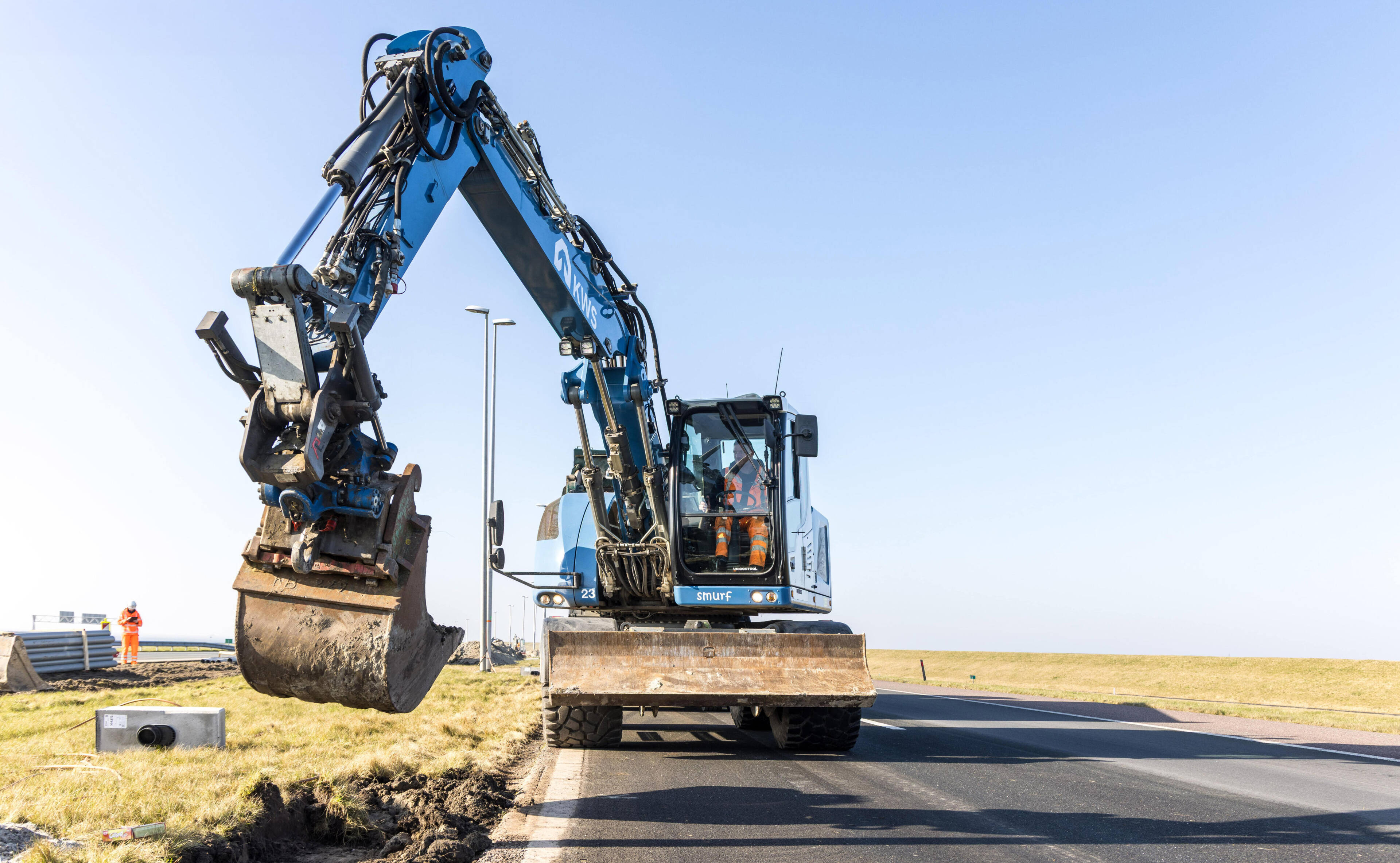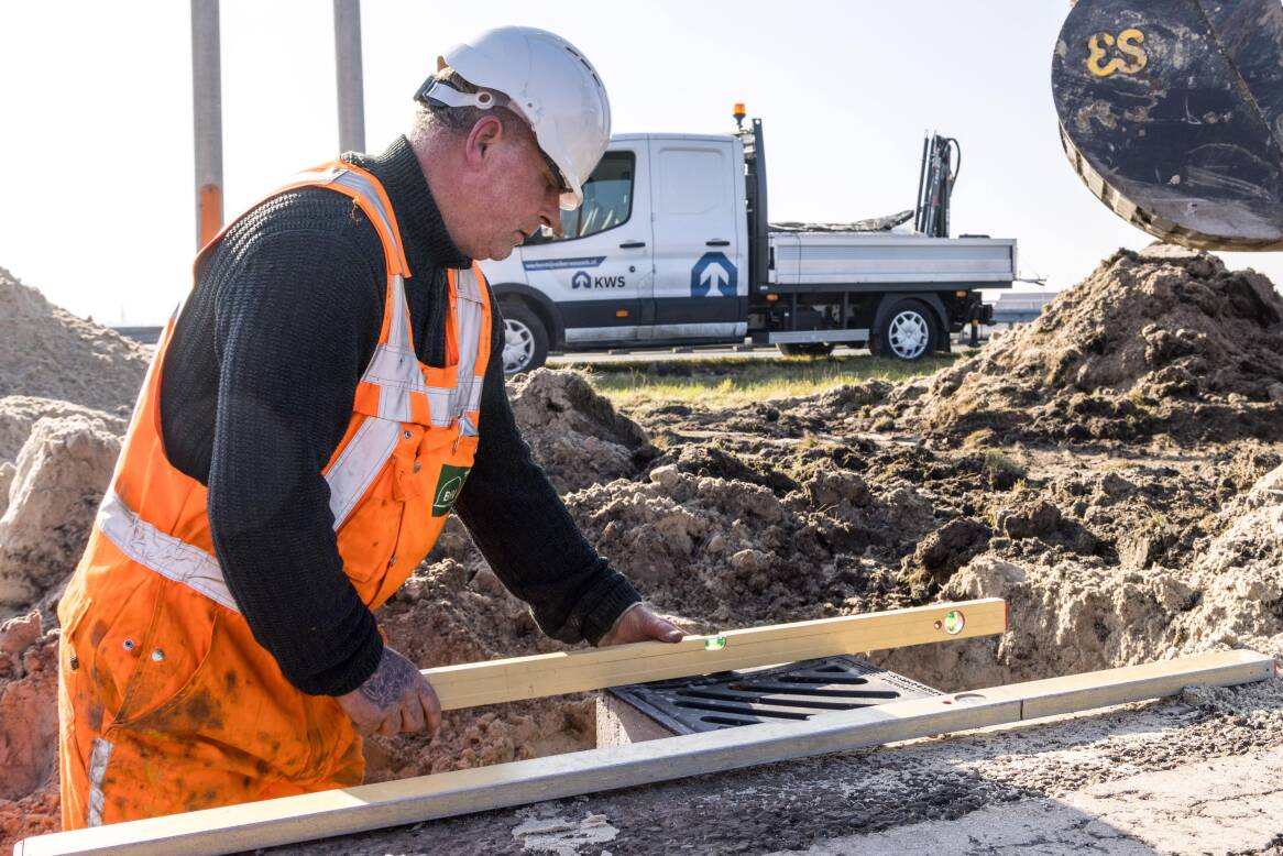 Waar de één blij wordt van een dorpsrotonde, gaan de ogen van Cees en Wouter juist glimmen van grootschalige snelwegprojecten. ‘Mijn hart ligt echt bij dit soort werk,’ zegt Wouter. ‘Veel mensen, veel materieel, strakke deadlines. Het is gewoon topsport.’ Cees knikt: ‘Ik heb onlangs een gemeentelijk project gedaan, ook heel leuk, maar de dynamiek, het tempo en de samenwerking van grote werken trekken me toch telkens terug.’ Die liefde voor groot werk sluit naadloos aan bij de ambitie van KWS: weer vaker op de snelweg actief zijn. ‘Vanuit de organisatie is er bewust voor gekozen om meer zichtbaar te zijn op landelijke projecten,’ vertelt Wouter. ‘En voor onze vestiging Zwolle-Leek betekent dat ook meer continuïteit voor mensen en materieel.’ Cees vult aan: ‘Als je elk jaar een paar van dit soort klussen hebt, kun je vooruit plannen én je mensen behouden. Die gasten willen ook gewoon mooi werk doen.’