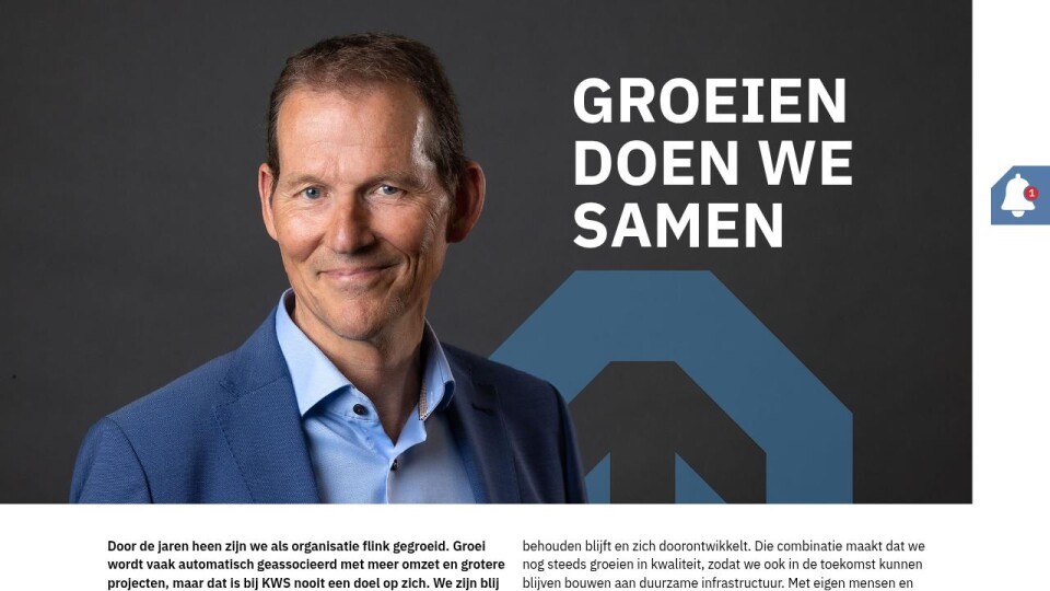 Door de jaren heen zijn we als organisatie flink gegroeid. Groei wordt vaak automatisch geassocieerd met meer omzet en grotere projecten, maar dat is bij KWS nooit een doel op zich. We zijn blij met de balans tussen de grote, multidisciplinaire, landelijke projecten en de meer bescheiden, maar minstens zo belangrijke, regionale projecten en onderhoudswerken. In omvang zijn we waar we willen zijn. Nu is het tijd om die groei te verdiepen. Niet door simpelweg méér te doen, maar door slagvaardiger te worden en nóg beter te worden in wat we al doen.