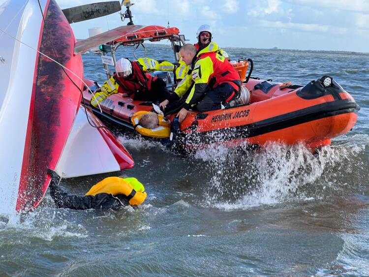 Er is één reddingsactie die Dennis altijd is bijgebleven: ‘We kregen een melding van een omgeslagen catamaran en er was geen persoon meer aan boord. Het begon al te schemeren, dus ik wist: dat wordt moeilijk zoeken.’ Gelukkig hadden Dennis en zijn collega’s de man snel gevonden, maar onderweg terug zagen ze per toeval nog een ongeluk. ‘Er was wéér een omgeslagen catamaran. Toen was het al pikkedonker, maar we vonden hem gelukkig snel. Hij hield zich nog vast aan het schip, maar vertelde dat zijn vrouw los moest laten. Het was echt puur geluk dat we haar nog konden vinden.’ Het moment dat Dennis de twee herenigt in de haven, herinnert hij zich als de dag van gisteren. ‘Daar zagen ze elkaar weer. Als je dan ziet wat voor emoties er los komen. Dat ben ik nooit vergeten.’