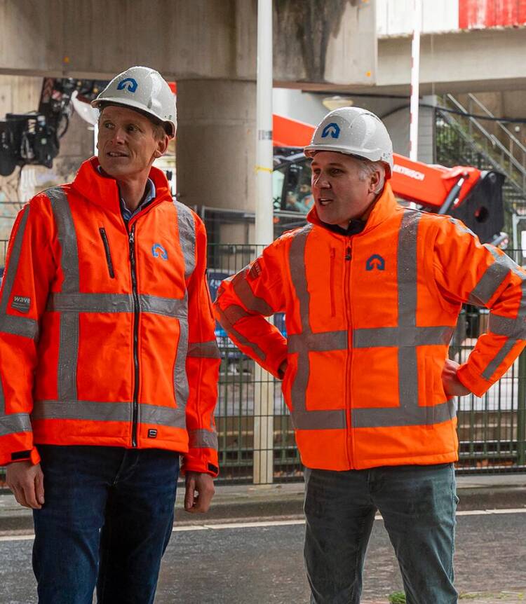 Ook buiten Zuidasdok kennen Pieter en Robert hun portie uitdagingen. Pieter werkte eerder aan projecten waar veel mensen meekijken, zoals Knooppunt Hoevelaken en de Noord/Zuidlijn en merkt dat die ervaringen hem nu helpen. ‘Daarom ben ik nu goed voorbereid op alle verschillende werkculturen die hier samenkomen.’ Robert verwijst naar een calamiteit bij de A7 Prinses Margriettunnel, waar hij in de kerstvakantie van 2022 werd opgeroepen. Een deel van de tunnel kwam daar omhoog door druk van het grondwater. ‘De A7 moest afgesloten worden, dus we moesten meteen beginnen. Geen contract, de hand geschud en gewoon gaan doen. We zijn gestart op basis van vertrouwen en transparantie.’ Die basis wil hij ook binnen het project meenemen: vertrouwen in elkaar en transparantie in de verschillende belangen.