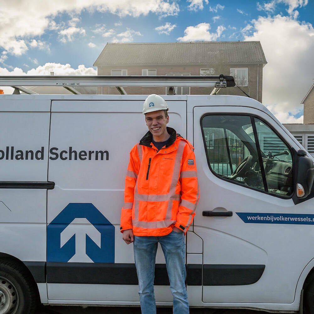 Voor Julian (22) uit Pernis draait zijn week om een mooie combinatie van studie en praktijk. Hij studeert Civiele Techniek aan de TU Delft en werkt daarnaast twee dagen per week als werkstudent bij Holland Scherm, dochteronderneming van KWS. Daar houdt hij zich bezig met duurzaamheid en innovatie binnen infrastructuurprojecten. “Het is mooi dat je al tijdens je studie aan echte oplossingen kunt werken.”