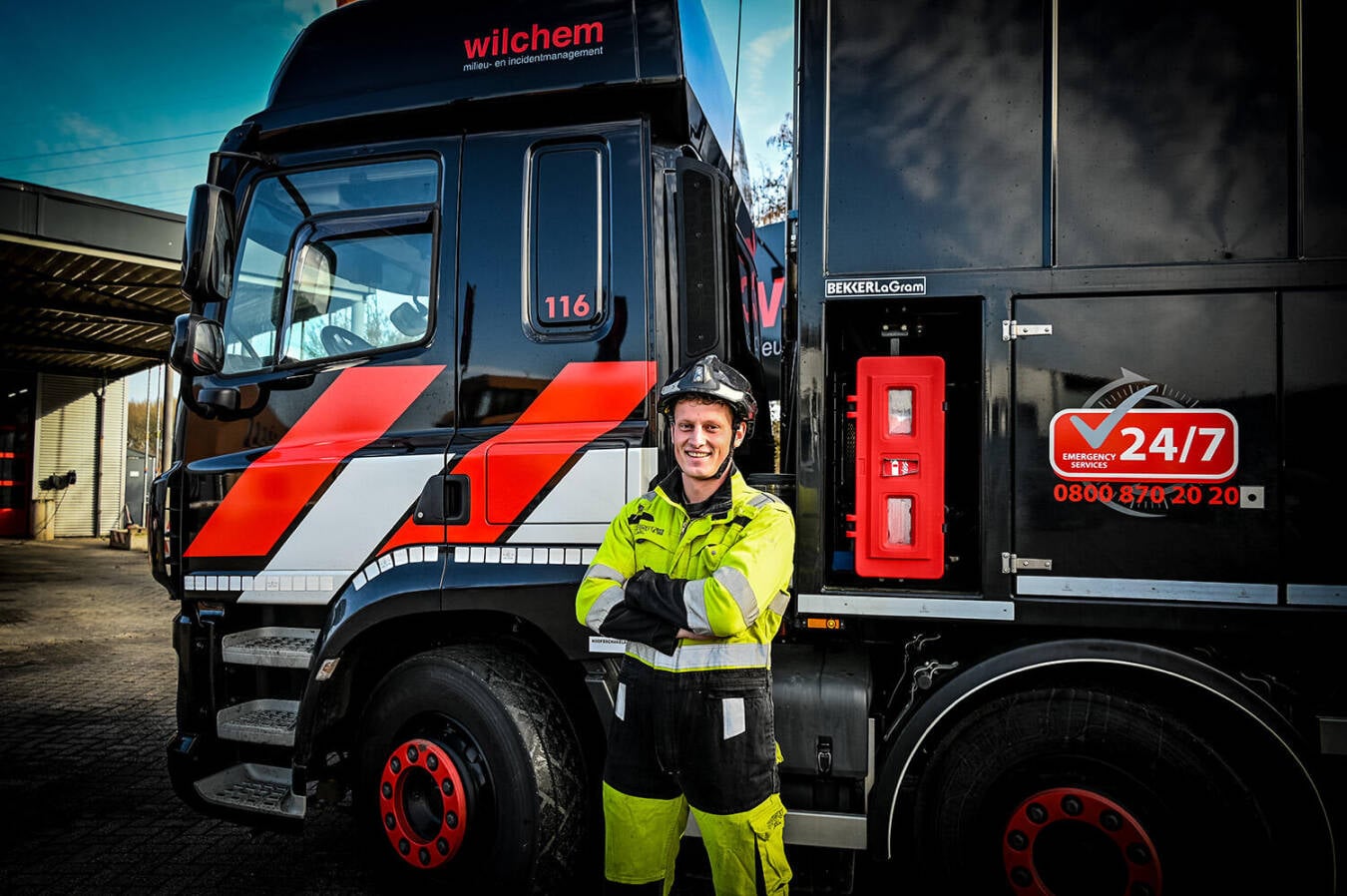 Een klus die hem is bijgebleven, is een vrachtwagenchauffeur die na een black-out van de weg raakte en in de sloot belandde. “Tijdens het bergen scheurde de dieseltank open. Dan moet je snel schakelen: afzetten, vervuilde grond afgraven, olie in de sloot indammen en het wegdek reinigen. Je werkt met veel partijen samen. Als het dan veilig en netjes wordt opgelost, geeft dat echt voldoening.”