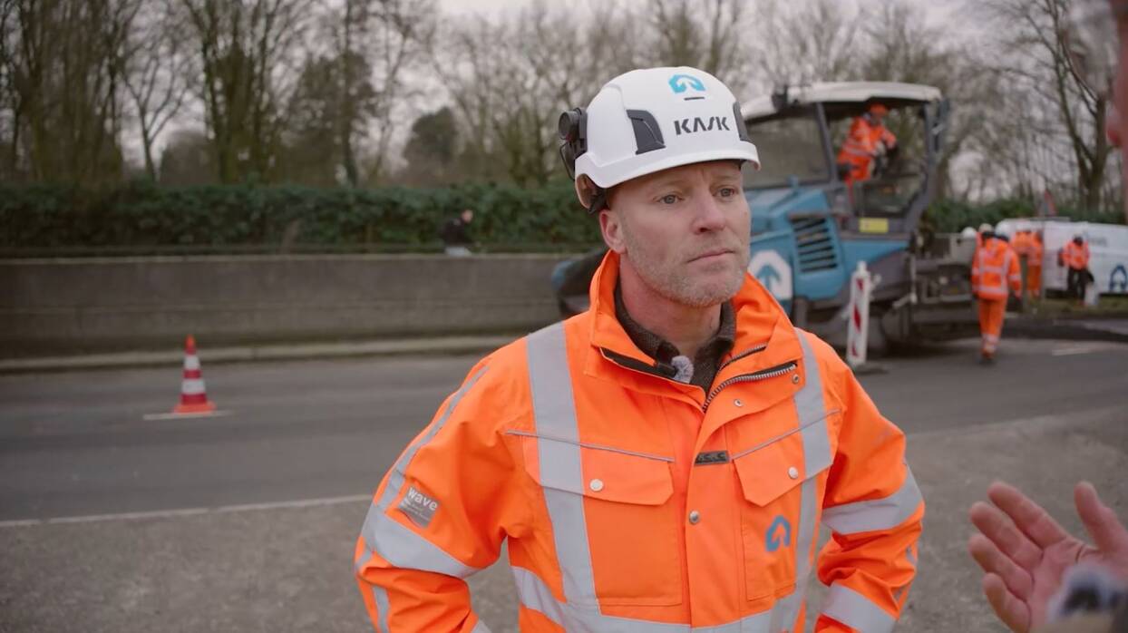 ‘Aanrijdgevaar is het grootste beroepsrisico voor onze collega’s,’ zegt David zonder aarzeling. ‘Je werkt in een werkvak waar verkeer langs raast. En binnen dat werkvak heb je een mierennest van rijbewegingen: vrachtwagens, walsen, kranen… En dat terwijl er mensen tussendoor lopen.’ Dat vraagt om keuzes in elke fase van een project. Niet pas buiten op het asfalt, maar al bij de tender. ‘Kun je het werkvak volledig afsluiten? Kun je ontwerpkeuzes maken die verkeersstromen beperken? Wat spreek je met de opdrachtgever af?’ David ziet dat daar steeds beter in wordt samengewerkt. Zo zet Rijkswaterstaat vaker in op grootschalige afsluitingen. Ook intern is er geïnvesteerd door bijvoorbeeld project-veiligheidskundigen aan te nemen. ‘Eerst waren het ZZP’ers die hun kennis weer meenamen naar de volgende opdracht. Nu behouden we die ervaring.’